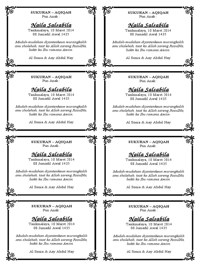 Kartu ucapan aqiqah bisa di edit. Aqiqah bahasa jawa doc undangan me. Beberapa contoh desain undangan pernikahan bahasa sunda terbaru 2016 dengan menggunakan bahasa sunda yang. Mohon maaf apabila banyak kesalahan dalam penulisan artikel atau informasi tersebut yang ada kaitannya dengan kata kata aqiqah.